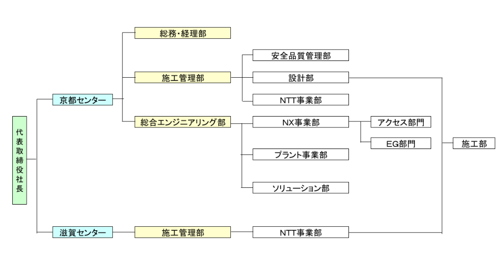 我社は情報通信工事を中心として平成17年6月に設立致しました。NTT工事をはじめ国土交通省、各自治体等の情報通信工事を受注し、京都府・滋賀県を中心に近畿・東海北陸圏はもちろん東日本エリアにもシェアを広げ、設計・施工・管理を一体的に行っております。